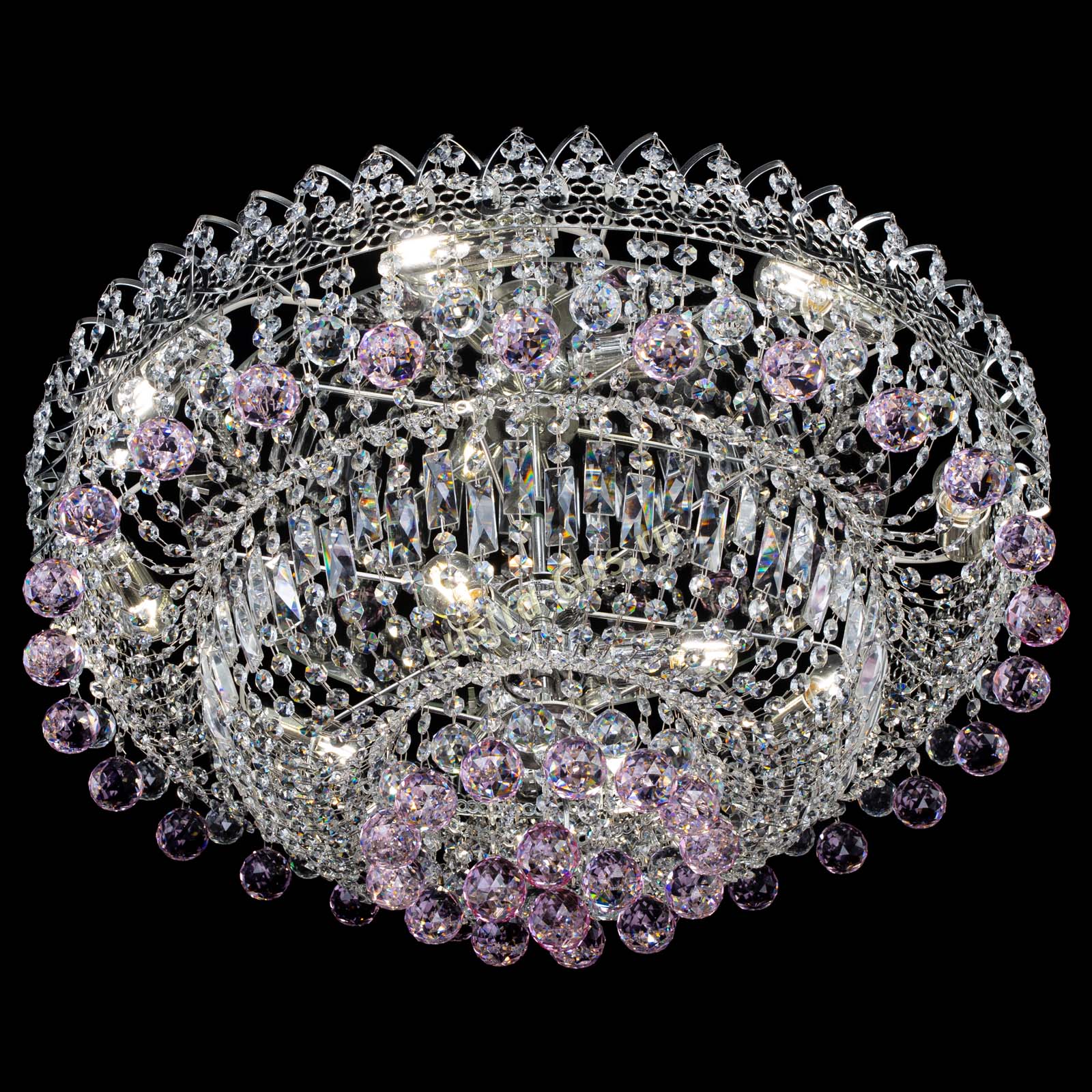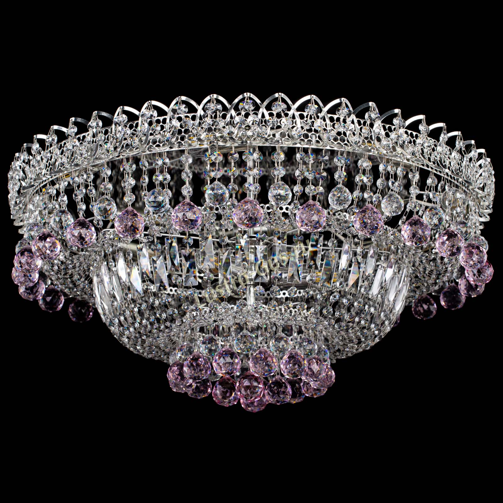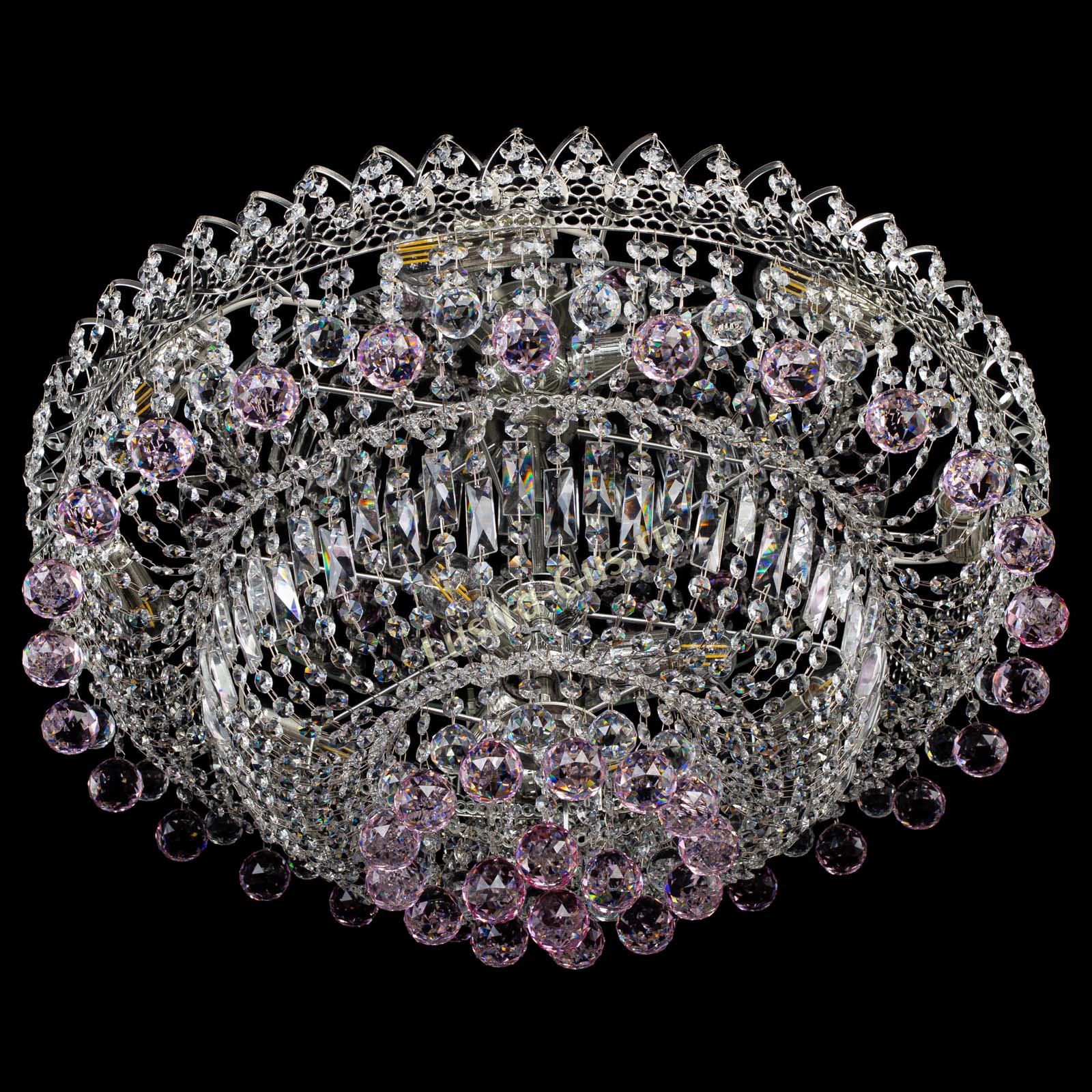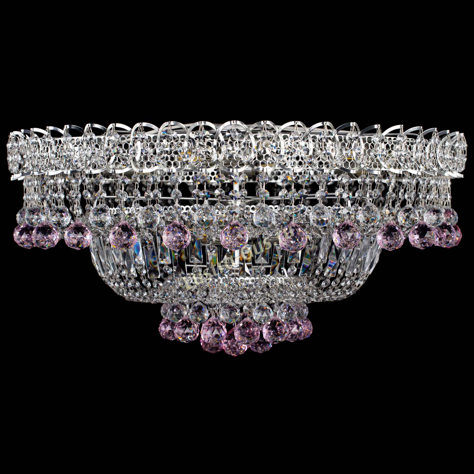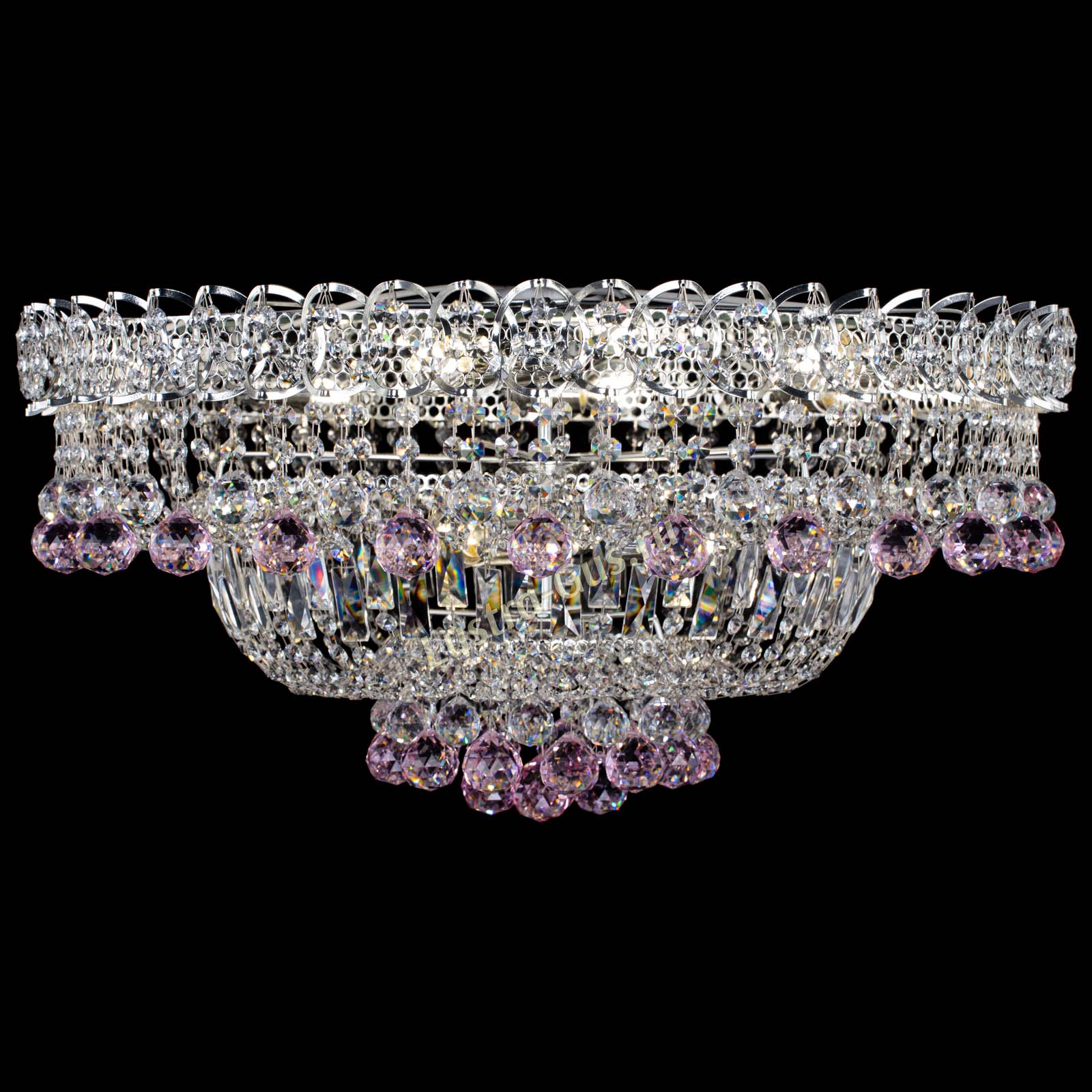 Люстра Хрустальный каскад №3 Шар розовая в Новосибирске